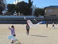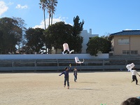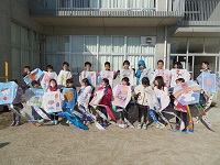 自分で作ったたこをもって集合写真を撮影した後,実際にたこをあげました。とても楽しい時間を過ごしました。