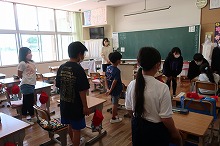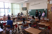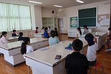 1年生を迎える会を、カッキ―ン班(1年生から6年生の縦割り班)ごとに行いました。班長さんが1年生を迎えに行き、各教室に分かれて自己紹介や勝浦小〇×クイズを行い、楽しく過ごしました。