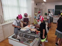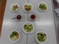 今日の実習は,ゆで野菜サラダです。野菜を食べやすい大きさに切り,ゆでました。ドレッシングも自分たちで作りました。