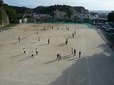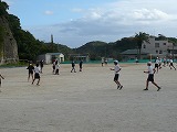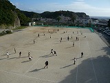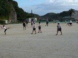 タッチダウンパスゲームをしていました。この活動は楽しみながら、投捕運動を向上させることができます。元気モリモリで取り組んでいました。