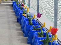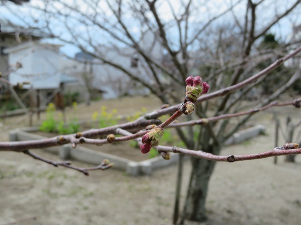 校庭の草花もあちらこちらできれいな花を咲かせています。勝浦小学校の校地南の桜も,明日には開花するぐらいにつぼみも大きくなってきました。きれいな桜が咲くのが楽しみです。