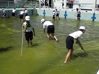 プール本体はもちろんのこと,更衣室,トイレ,プールサイド等を一生懸命掃除してくれたおかげで,大変きれいになりました。