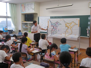 子どもたちは,多くの先生方が参観する中,千葉県の交通網が人口との関係で広がったり発達したりしていることを,いくつもの資料を参考にしながら発見しました。