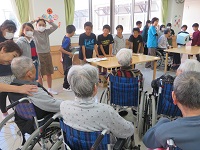 全体での発表を行ったあとに,各グループに分かれて,準備してきた内容で高齢者の方々と一緒に活動しました。高齢者の方々も大変喜んでくださいました。