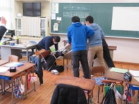 4年生の教室に不審者(警察官)が侵入しできた後,担任はすぐに子どもたちを教室から逃がし,不審者を子どもたちから遠ざけました。その後,応援にかけつけた職員が協力して不審者を取り押さえるところまで行いました。