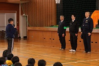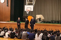 子どもたちは,体育館で避難の仕方や登下校中に不審者からの声かけに対して,素早く安全に行動する方法について教わりました。