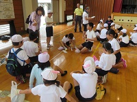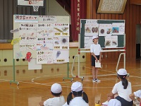 最初に,郁文小学校の体育館で,磯にいる生き物の説明を聞きました。その後,実際に磯場にいき,たくさんの生き物を見つけることができました。