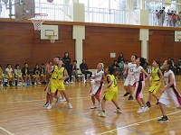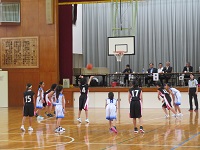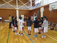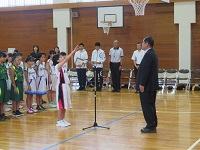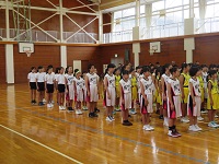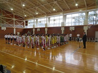 勝浦小学校のミニバスケットボール部の子ども達は今日の大会を頑張るぞという気持ちで開会式に参加しました。