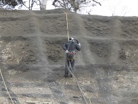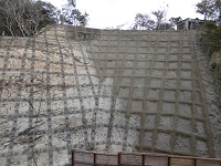 校舎裏の法面で,法面保護工事(補強土植生法枠工)が行われています。完成に向けて,順調に工事も進んでいます。