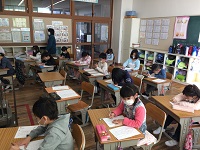 1年生にとっては初めての校内書き初め展への取り組みです。子どもたちは,今までの練習をもとにして,一生懸命に清書していました。どの子も最初に書いた時と比べて大変上手になりました。