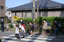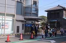 勝浦市長さんが千葉興銀の前で、朝の交通指導を行ってくださいました。児童の登校時間に合わせて、市長様をはじめ教育長、勝浦警察署長、交通安全協会の方々など、多くの方々が参加して、見守りを行ってくださいました。