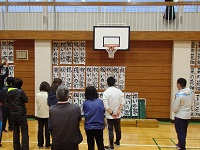 昨日,子どもたちが仕上げた作品を体育館に掲示しました。