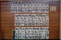 書き初め展の公開は,本日1月18日(木)から1月19日(金)の二日間になります。ご覧いただける方は体育館の玄関からお入りください。