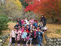 1年生の生活科校外学習は天候にも恵まれ,茂原公園で秋を満喫してきました。赤や黄色に色づいた木々の中で,子どもたちはグループに分かれて秋探し探検をしました。