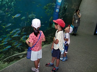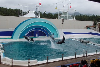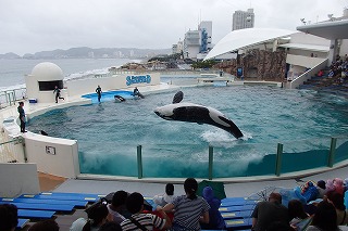 イルカのショーやシャチのショーでは大きい水しぶきに喜ぶ子どもたちの歓声が聞こえました。