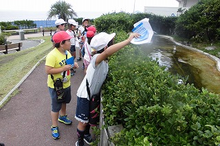 曇り空の中子どもたちは元気に活動していました。