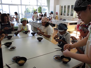 指導してくださった勝浦市食生活改善会の方々のおかげで,大変おいしい料理ができました。本当にありがとうございました。
