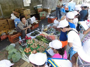 朝市通りでは,市に出店している方々に,自分たちが疑問に思ったことや調べたいと思ったことについて,インタビューをしました。