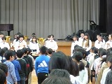 発表会に向けて、今まで練習をしてきました。児童代表の激励の言葉を聴いたあと、全校児童に演奏をしました。部員全員が心を1つにした立派な演奏でした。