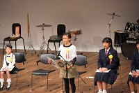式典の中で,市制60周年記念作文コンクールで市長賞を受賞した2年生男子と5年生女子2名が,立派に自分の60文字作文を発表しました。