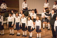 その後,音楽部の子どもたちがオリジナル曲「勝浦物語」を演奏しました。リハーサルの時よりもさらによい演奏ができました。