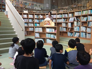 そこで、司書教諭の江澤先生による読み聞かせを図書室で行いました。低学年を中心に多くの子ども達が集まってきました。これからも、雨天時には読み聞かせを続けていきます。