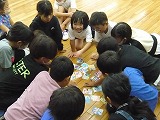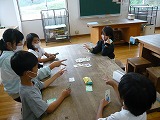 今日は雨が降っていたので、校舎内での活動でした。班ごとに「いす取りゲーム」、「だるまさんが転んだ」、「かるた」、「トランプ」等、とても楽しく活動をしていました。