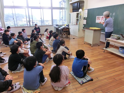 今日からの朝読書に「おはなしスキップ」の皆様による「読み聞かせの時間」が始まりました。子どもたちは、真剣なまなざしで興味深く話しに耳を傾けていました。