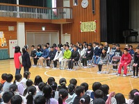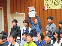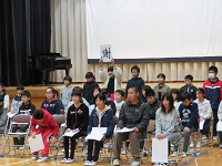 カッキーン班で作った色紙を,1年生が6年生に一人一人に手渡しました。その後,6年生から心に残った漢字1字を発表しました。とても立派な発表ができました。