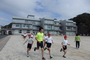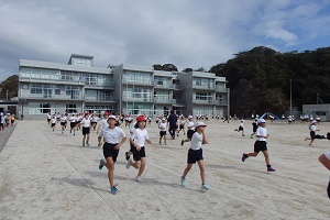 10月25日~2月14日までの水曜日に,子どもたちに自分の体力に感心をもたせるとともに,走力・体力の向上と運動の習慣化を図ることを目的として,業間マラソンを行います。