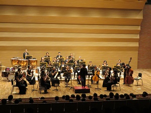 演奏団体は,千葉交響楽団(旧称:ニューフィルハーモニーオーケストラ千葉)です。「カルメン」組曲よりトレアドールから8曲を演奏してくれました。大変素晴らしい演奏に感激しました。指揮者体験コーナーもあり,勝浦小学校の6年生も参加しました。