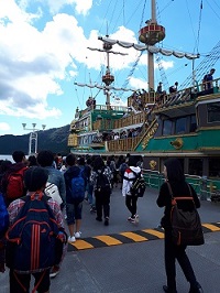 大涌谷の見学が終わり、芦ノ湖遊覧を行いました。天候もよく、すがすがしい中での芦ノ湖遊覧ができました。