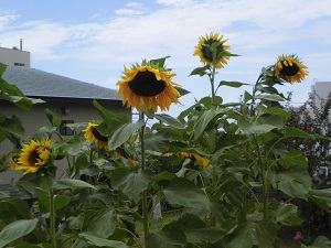 2020年東京オリンピック・パラリンピックに向けての,「おもてなしCHIBAプロジェクトin九十九里・外房 ~ひまわりと笑顔で結ぶオリンピック~」のために,勝浦小学校でもいただいたひまわりの種子をまきました。当初,元気に育つかとても心配でしたが,背丈以上の大きなひまわりが育ちました。今回育てたひまわりからは多くの種子がとれると思います。この種子をもとにして,来年度さらにたくさんのひまわりを育てていきたいと思います。