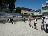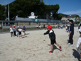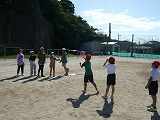 暖かな陽射しが差し込むグラウンドでは、全校児童がボールパスラリーをしていました。元気モリモリで楽しく活動をしていました。