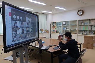 家庭で過ごしている児童が、学校にいる担任の先生とオンライン授業を行いました。