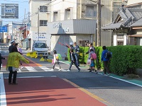 また,千葉興業銀行のところの横断歩道では,猿田市長さんをはじめ,勝浦警察署,地域のボランティアの方々,教育委員会の方々が交通指導に出てくださいました。ありがとうございます。