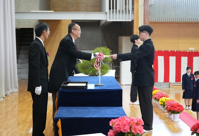 体育館で行われ,在校生と家族が見守る中,卒業生一人一人に卒業証書が手渡されました。