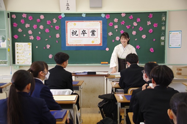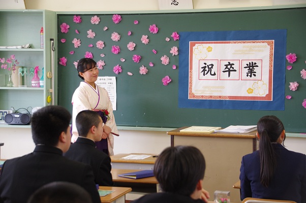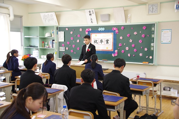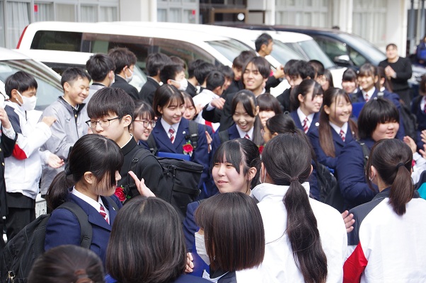 当日朝は,冷たい雨が降るあいにくの天候でしたが,式が進むにつれて雨も上がり,卒業生が母校を後にする頃には日差しも見え,温かい雰囲気で見送りました。