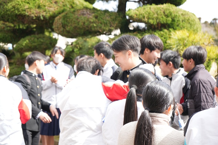 〔生徒代表からお礼の花束を渡しました〕
