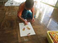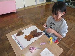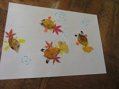 11月10日(月)5校時、1年生活科「あきを楽しもう」の学習で「落ち葉でアート」を行いました。子どもたちは、様々な形や色の落ち葉を上手に使って、個性豊かな作品を作り上げました。子どもたちの発想は豊かで素晴らしいです。