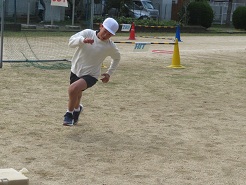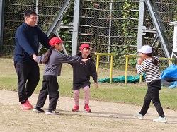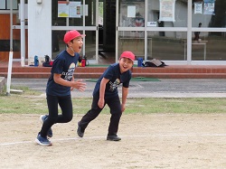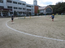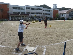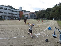 11月11日(火)4校時、5,6年体育でベースボール型のゲームを行いました。場の工夫をしながら先生も含めた5人で楽しく運動しました。