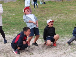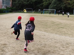 11月12日(水)今月の昼休みの全校遊びは鬼ごっこを行いました。保健・体育委員の児童がボールでくじを引き、何の鬼ごっこを行うか決めました。初めは増え鬼、次に手つなぎ鬼、最後に氷鬼を行いました。子どもたちは鬼ごっこが大好きなので、チャイムが鳴る瞬間までグラウンドを全力で駆け抜けていました。手つなぎ鬼では、まるで追い込み漁のようでとても盛り上がりました。