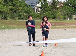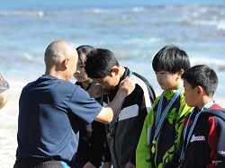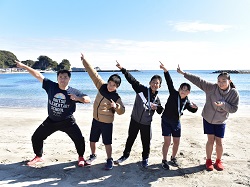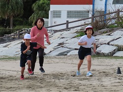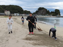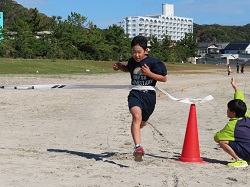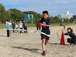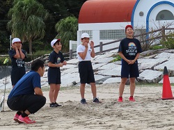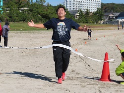 また、今回の砂浜マラソン大会にあたり、試走と本番で会場の準備等を国際武道大学の2名の学生さんにお手伝いいただきました。朝早くからのご準備ありがとうございました。