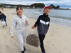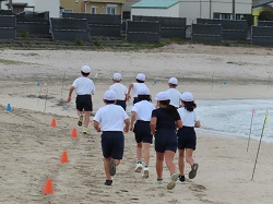 11月18日(火)海岸清掃と20日に行われる砂浜マラソン大会の試走を行いました。海岸清掃では、走路にある小さなガラスの破片などを一生懸命集めました。試走では、本番さながらに一人一人気合の一言を言った後、最後まで全力で駆け抜けました。大会当日も頑張りましょう!