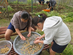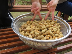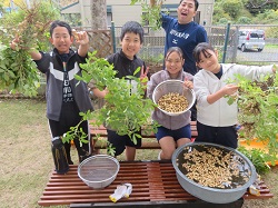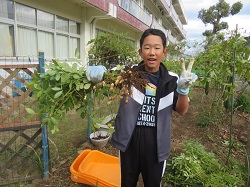 11月18日(火)の4校時に、5・6年生が落花生の収穫及び茹で落花生作りを行いました。立派な落花生をたくさん収穫できたため、昼休みに在校生と先生方の試食会も行いました。茹で加減もばっちりでとても美味しかったです。在校生の中にはおかわりで何度も来る子もいました。