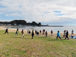 11月20日(木)に最後の砂浜マラソン大会を行いました。これまで、砂の芸術や着衣水泳、宿泊学習等で興津海岸での活動を行ってきましたが、海岸での活動は本日で最後となりました。