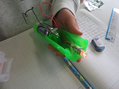 11月25日(火)4校時、3年理科で「電気の通り道」の学習を行いました。子どもたちは、豆電球と乾電池で作ったテスターを使って、身の回りにある、紙・プラスチック、ガラス、くぎ、アルミニウムはく、はさみ等が電気を通すかどうか調べました。豆電球の明かりがつくことで電気を通すことを確認しながら、楽しそうに実験に取り組んでいました。