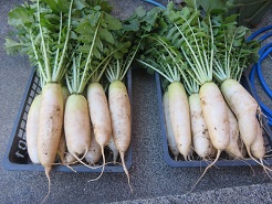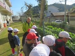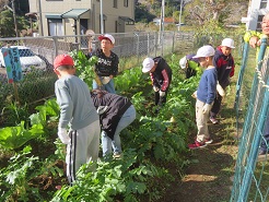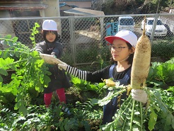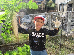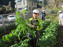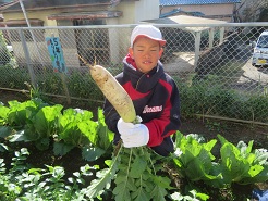 11月26日(水)2校時、1,3,4年で畑で育てた大根掘りを行いました。用務員さんに教えていただきながらワクワクしながら大根を引き抜きました。子どもたちは引き抜く瞬間を楽しみながら立派な大根に大喜びでした。