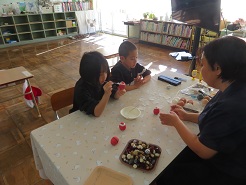 11月17日(月)可愛いサンタとトナカイが少し早めのクリスマスプレゼントで、先生方にさつまスティックを作って持ってきてくれました。先生方は「美味しい!!!」と大喜びであっという間に完食してしまいました。