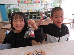 11月28日(金)2校時、1年生活科で自然物を使ったクリスマスの飾りづくりに取り組みました。様々な種類の木の実や卵の殻を使って素敵な飾りを作ることができ、子どもたちはとてもうれしそうでした。